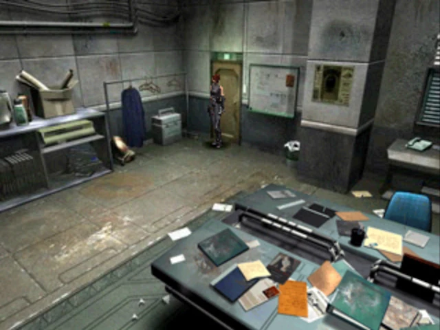 Es una zona de seguridad con vigilancia por cámaras. Dentro se encuentra una computadora para guardar partida o comprar elementos con puntos de extinción. Encima de la mesa se encuentra un archivo.