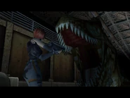 To defeat the T-Rex, Regina must hit it 4 times with either Grenade Bullets or Heat Bullets. The battle also ends if she manages to evade its biting attack 4 times. Requirements are lower in Easy mode.