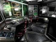 | Terminal on the top platform | The head of this room probably sat in this seat. Many terminals are set here. Probably used for receiving reports from the other facilities. | この管制室の司令者が座る席らしい 各施設からの報告を受けるための端末がセットされている |