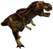 The Tyrannosaurus cannot be killed in either of the games by conventional means, and serves as an essential boss character in certain, if not most parts on all 4 games. The T. rex can devour the player whole with ease, should the player not defend themselves. Although most weapons won't make the dinosaur flinch, some strong firearms such as the Missile Pod or Anti-Tank Rifle, which can be bought later in the game, may deter the T. rex, only for a short time.
