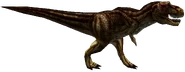 One Tyrannosaurus hunted Regina and Dylan Morton of a 2010 rescue team for miles in the forests against a lake, along with Edward City on the opposite side. Having lost an eye during its first appearance, the dinosaur proved to be just as obsessive as the one Regina encountered one year earlier (relative to her time-frame). This ultimately led to its presumed downfall when it stumbled into a Giganotosaurus' territory near the Missile Silo, where it was shaken like a ragdoll before being killed.